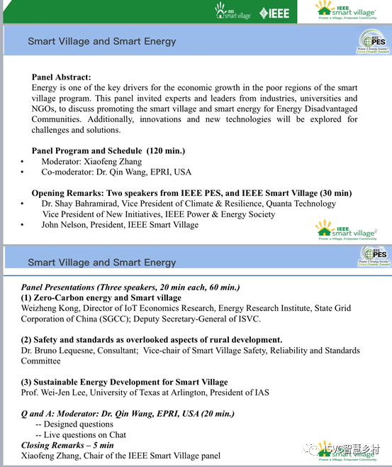 2021年7月27日美国东部时间19:00至21:00(北京时间7月28日7:00至9:00),IEEE PES 2021年年会——“智慧乡村与智慧能源”论坛召开。论坛邀请来自行业、大学和非政府组织的专家学者,讨论促进欠发达地区的智慧村庄和智慧能源发展的解决方案。论坛通过JUNO平台在全球范围直播。